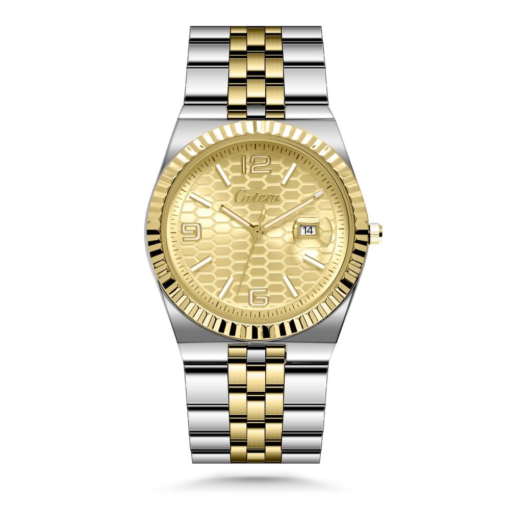 ساعة رجالية أنيقة تنبض بالقوة والهيبة، بلونها الفضي والذهبي اللامع الذي يرمز للنقاء والاعتزاز، مع تفاصيل دقيقة على الميناء تعكس العراقة والفخامة. تجمع بين الحداثة والأصالة، لتُذكرك بالنبض الذي يمضي بخطوات واثقة نحو المجد، وتمنحك حضورًا يليق برجال اعتادوا أن يكونوا في الصفوف الأولى