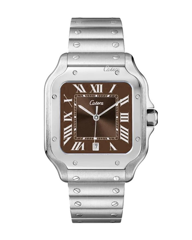 - ساعة بميناء كلاسيك بشكل مربع باللون البني