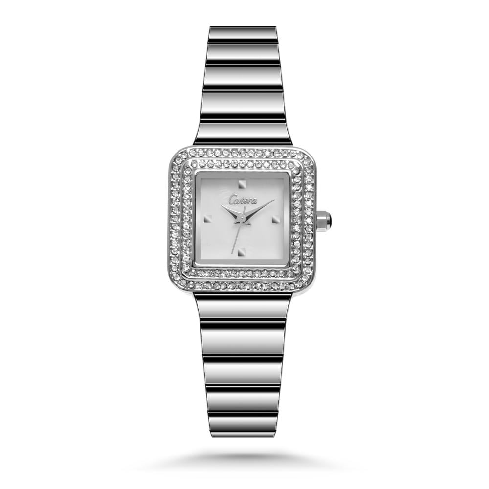 اجعلي وقتك أكثر قيمة مع ساعة كاتيرا النسائية بتصميمها المربع العصري ولمستها الفضية الراقية.