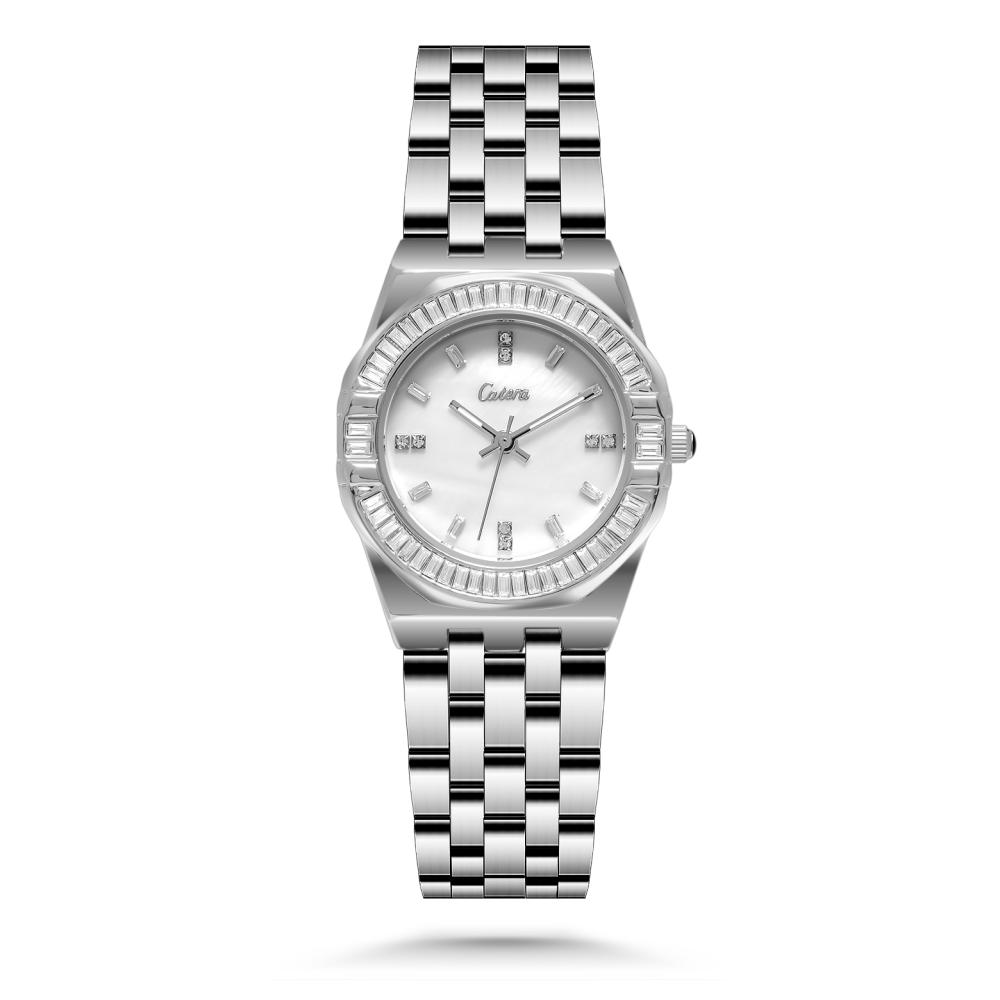 هذه الساعة الفاخرة تمثل الأناقة الكلاسيكية بروح عصرية راقية. يزينها إطار مرصع بفصوص من الزركون تعكس لمسة من الفخامة، فيما يضفي الميناء عمقًا وسحرًا خاصًا،. هذه الساعة ليست مجرد أداة لمعرفة الوقت، بل هي قطعة فنية تعبر عن الذوق الرفيع والشخصية الفريدة لمن يرتديها.