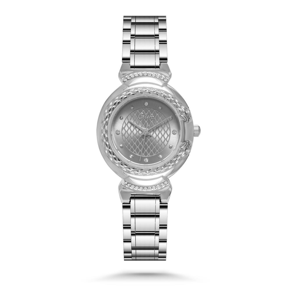 ساعة نسائية ستيل بلون فضي ميناء رمادي