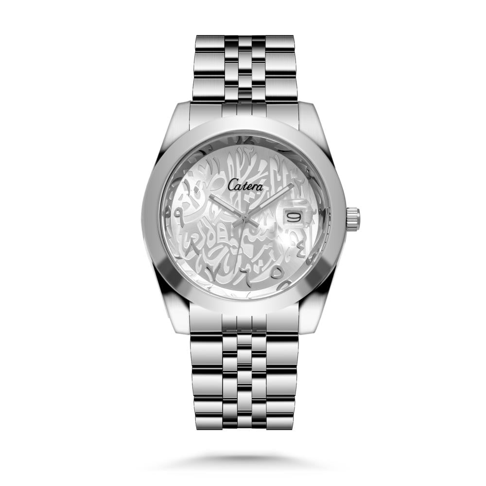 ساعة رجالية استيل فضي ميناء ابيض أرقام عربية