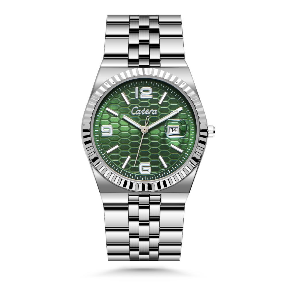 ساعة رجالية أنيقة تنبض بالقوة والهيبة، بلونها الفضي اللامع الذي يرمز للنقاء والاعتزاز، مع تفاصيل دقيقة على الميناء تعكس العراقة والفخامة. تجمع بين الحداثة والأصالة، لتُذكرك بالنبض الذي يمضي بخطوات واثقة نحو المجد، وتمنحك حضورًا يليق برجال اعتادوا أن يكونوا في الصفوف الأولى