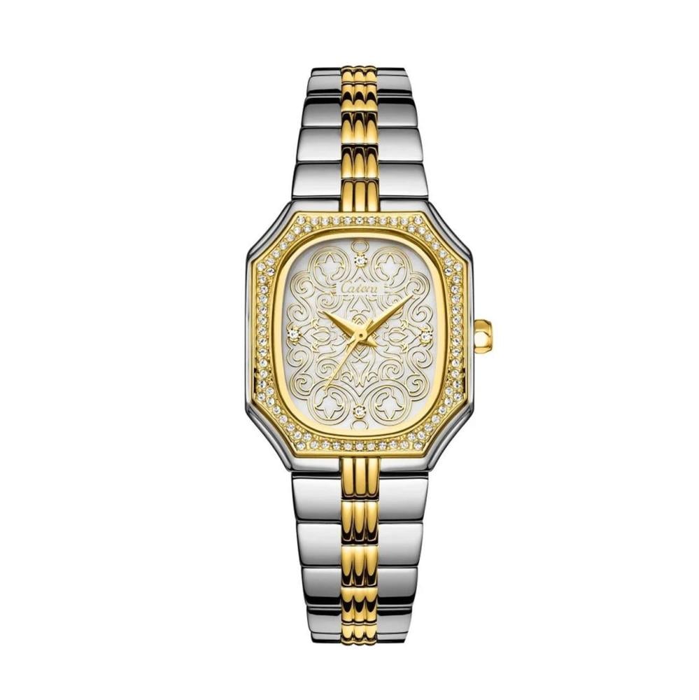 ساعة فاخرة من كاتيرا تعكس إطلالتك وجاذبيتك. اكتشفي روعة الأناقة مع ساعة نسائية راقية من مجموعة 2025، تنبض بالأنوثة والفخامة. تعكس هذه الساعة الأنيقة أحدث صيحات الموضة، وتأتي بتصميم أنيق يجمع بين الأناقة الكلاسيكية والابتكار العصري. ساعة نسائية خلابة من كاتيرا بسوار فولاذي كلاسيكي فضي وذهبي اللون. ساعة نسائية راقية وفاخرة، مثالية كهدية للمناسبات الخاصة.