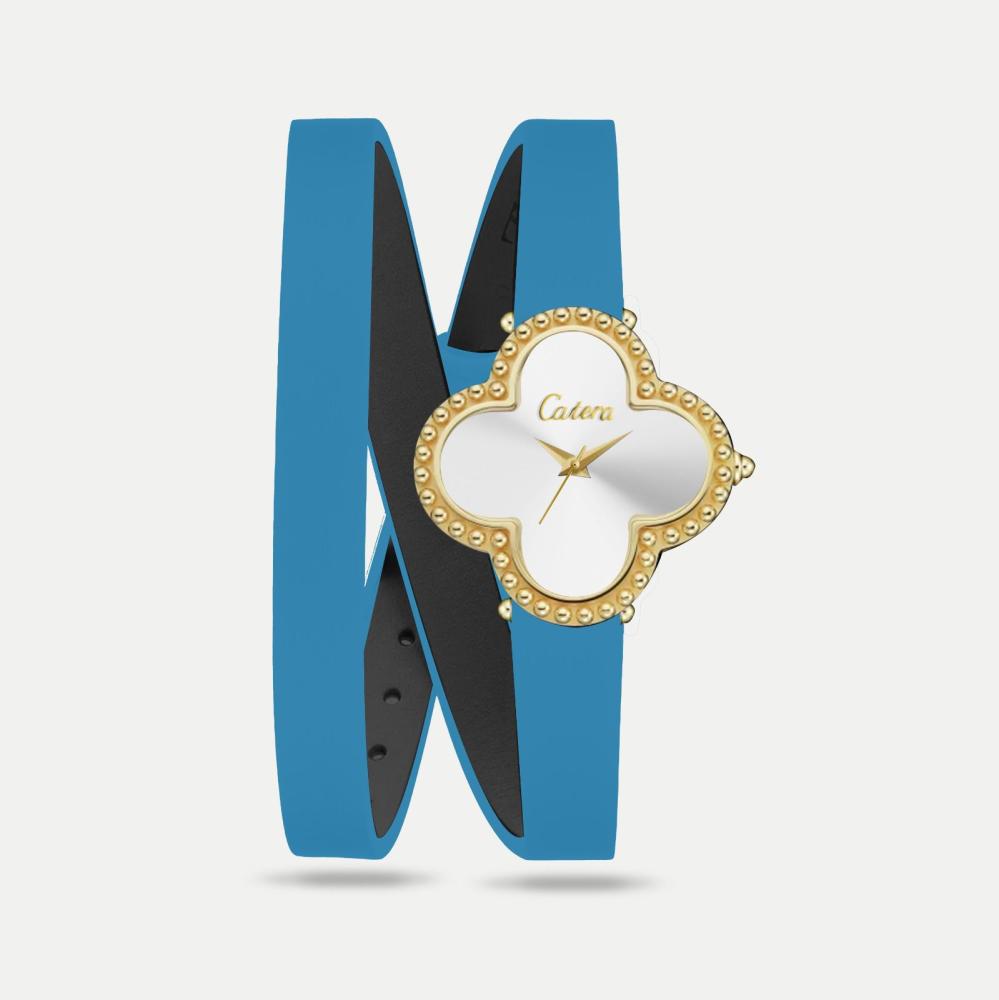 ساعة نسائية جلد ماركة كاتيرا سير أزرق فاتح إطار ذهبي