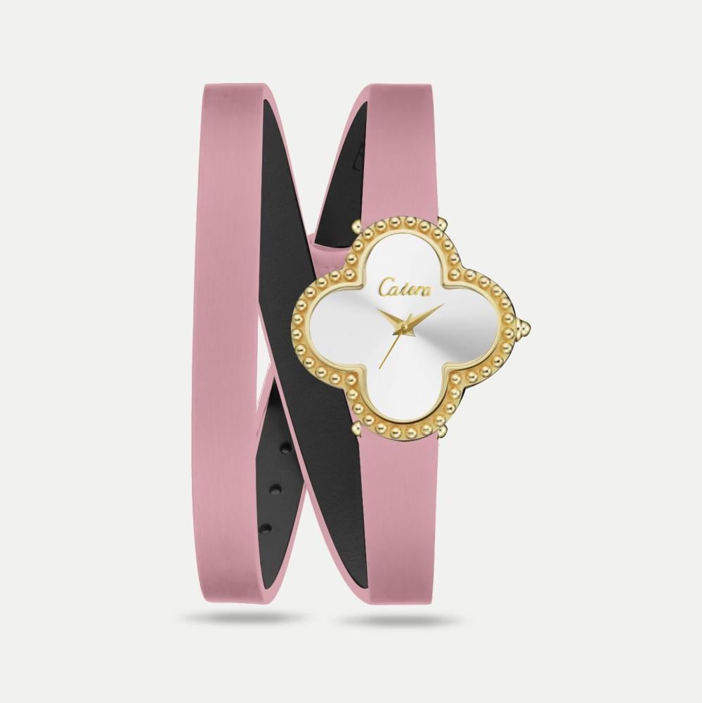 اختاري الأناقة والجودة مع ساعات نسائيه فخمه ماركه كاتيرا. هذه الساعة المميزة تجمع بين التصميم الفاخر والإحساس الراقي، بسير جلد وردي وإطار ذهبي يضيفان لمسة ساحرة لأي إطلالة.