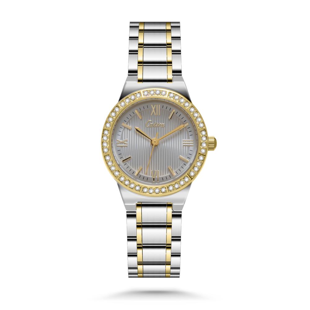 ساعة نسائية ستيل بلون فضي وذهبي ميناء رمادي